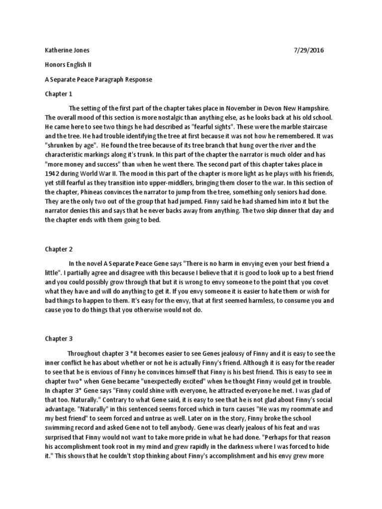 The piece occurred during the time of World War II; however, a separate peace essay, the novel did not involve any violence or war, a separate peace essay for one war: the […]. A Separate Peace by John Knowles The title of my book is A Separate Peace by John Knowles.